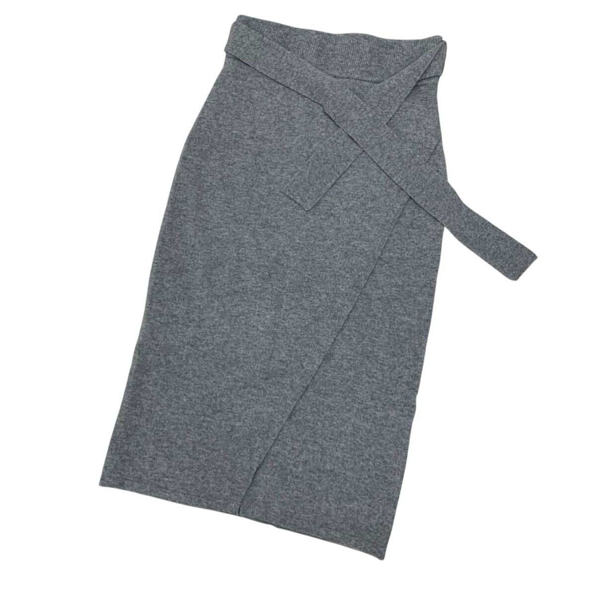 - 11NK013-63 ROPE ロペ ウール ニット 巻き タイト スカート ミドル丈 膝丈 グレー ベルト紐 付き レディース 女性用 38