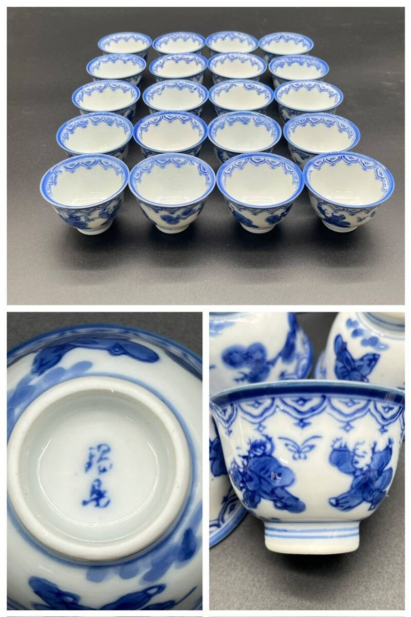 - 有田焼 鍋島燒 玉露用 雅山唐子 煎茶碗 20客 直径約6.3×高さ4.5㎝ 湯呑 茶碗 和食器 茶托 茶道 煎茶道具 茶道具 陶器 陶器製茶碗 (20303)