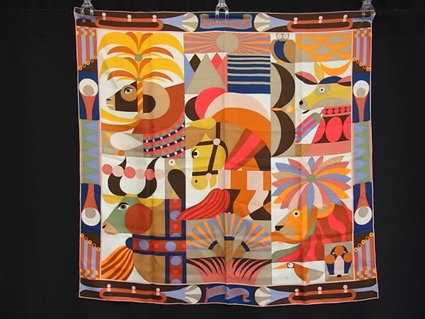 > 1円 ■美品■ HERMES エルメス Parade en Fanfare カレ90 シルク100% 大判 スカーフ ストール ショール レディース マルチカラー FU4294