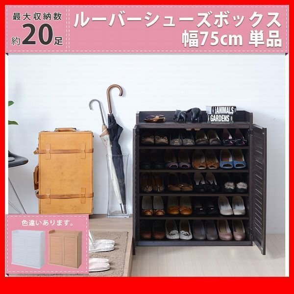 - 下駄箱★ルーバーシューズボックス 幅75cm 単品/靴箱 シューズラック 下足入れ 玄関収納/薄型 可動棚/濃茶 ナチュラル 白/SGTA-0102/zz
