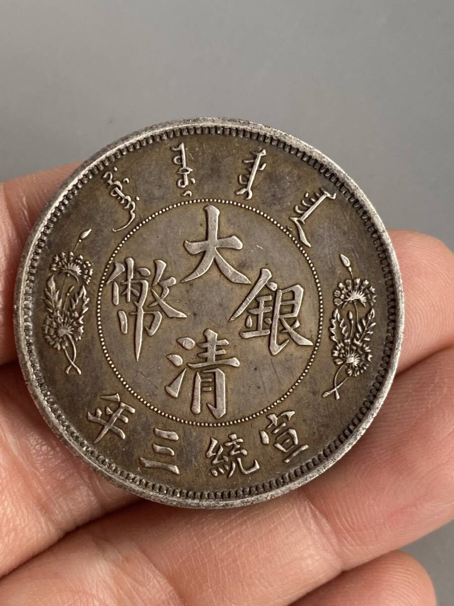 - 旧蔵 純銀彫 大清銀幣 宣統三年 銀元 銀貨 銀幣 中国古玩 骨董品 時代物 稀少唐物