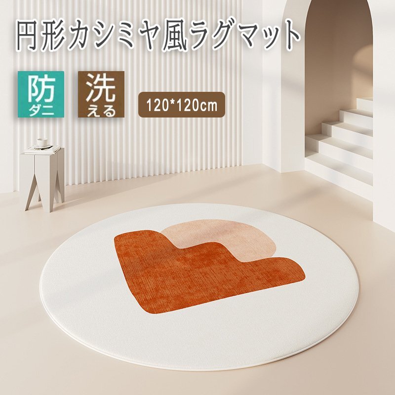 - 洗えるラグ ラグマット 円形 ラウンド 80*80cm 冬 暖かい カーペット 防ダニ 滑り止め おしゃれ 北欧 オールシーズン 14-120cm