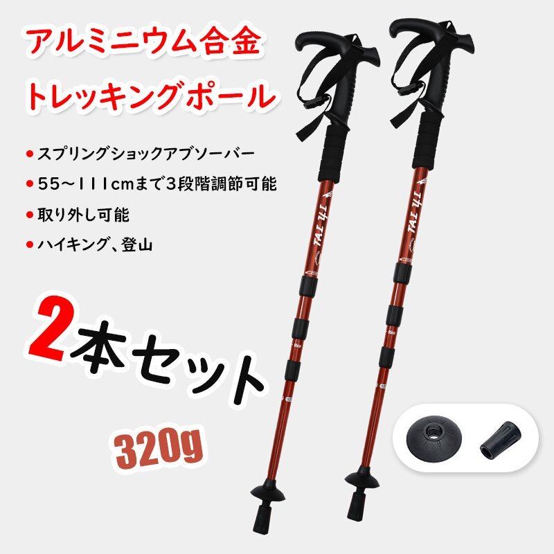 > トレッキングポール 2本セット 登山杖 トレッキングステッキ 伸縮 調節可能 軽量 アウトドア ハイキング 登山用品 シルバー hw1112re