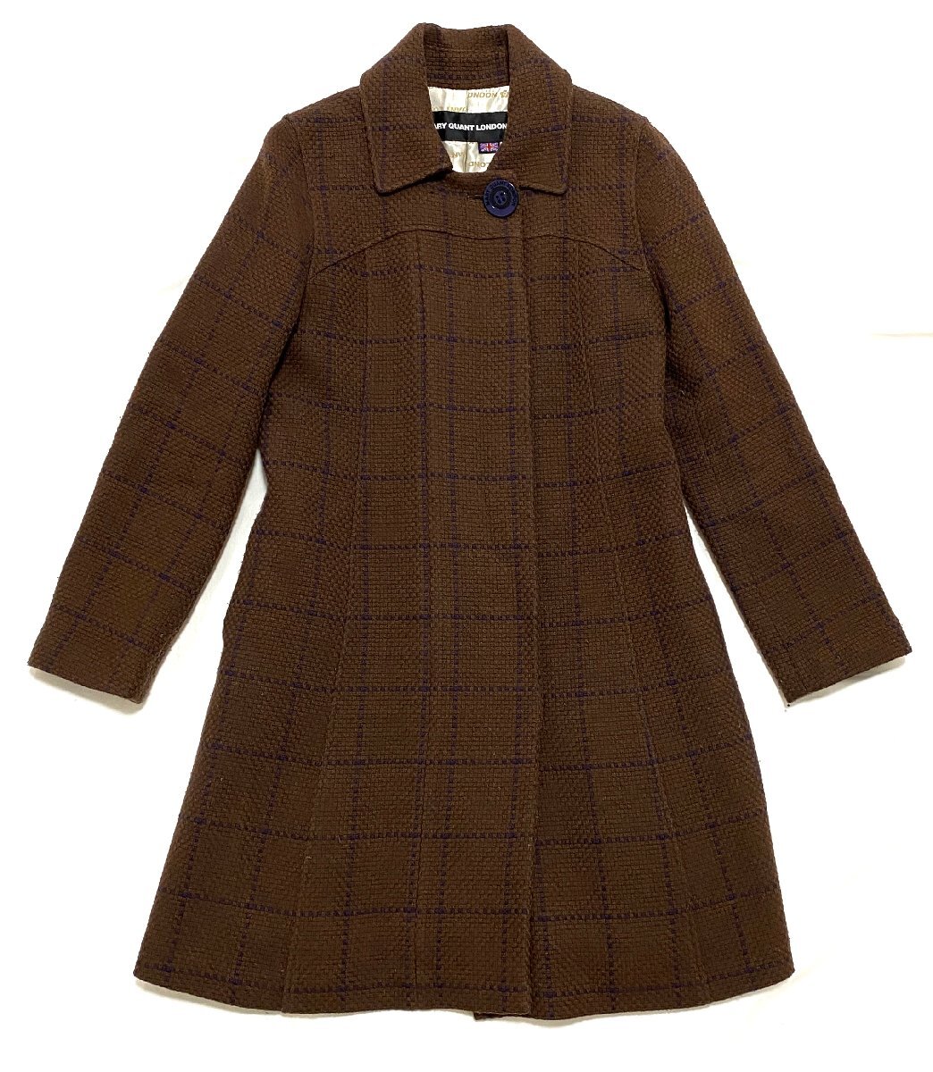 > 美品 Mary Quant LONDON マリークワントロンドン ウールコート ドレスコート デザインコート ジャケット ブラウン ツイード レディース M