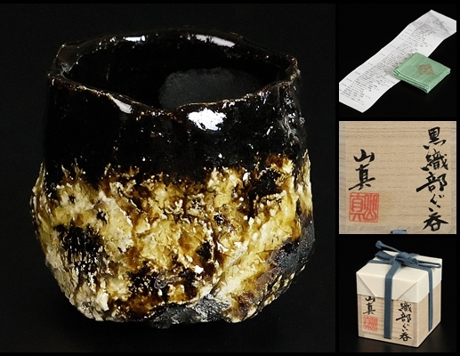 - 【 山口真人 】秀逸作 黒織部ぐい呑 共箱 保証