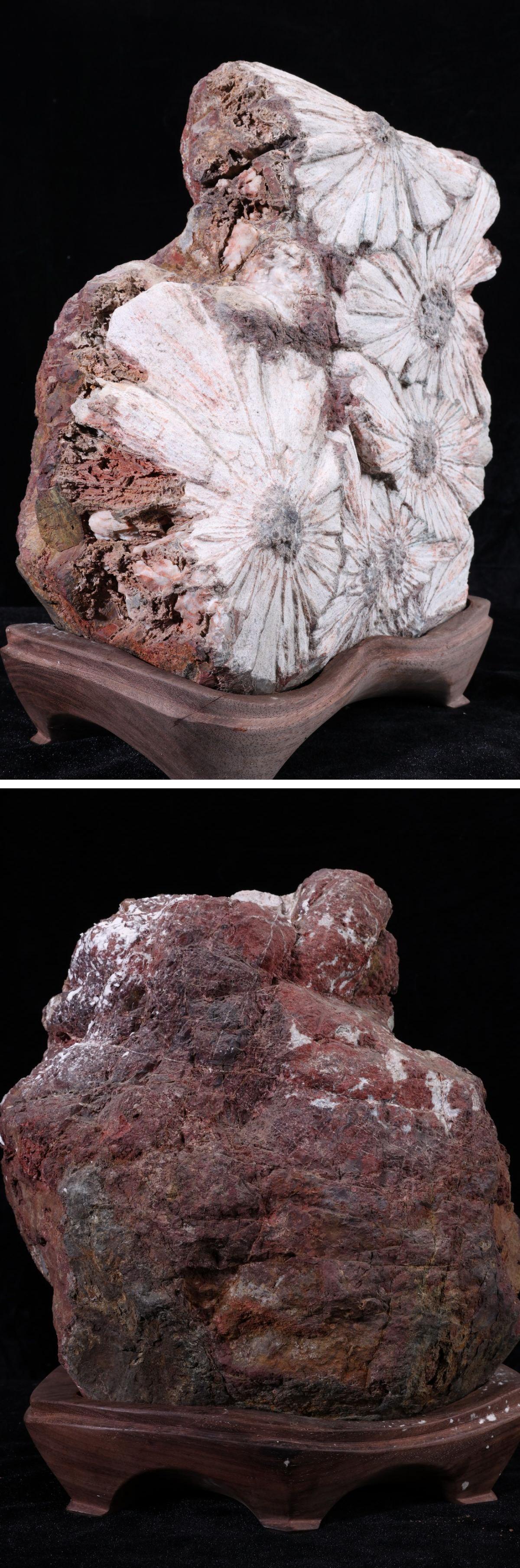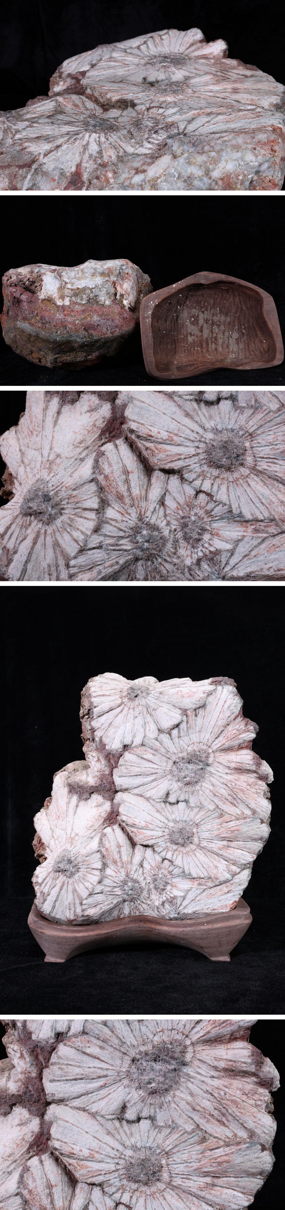 > 【珍品堂】1円から N77-V5 菊花石 天然石 原石 重25.9kg 台付 鑑賞石 パワーストーン 縁起物 時代物 コレクション 工芸品 骨董品 古美術