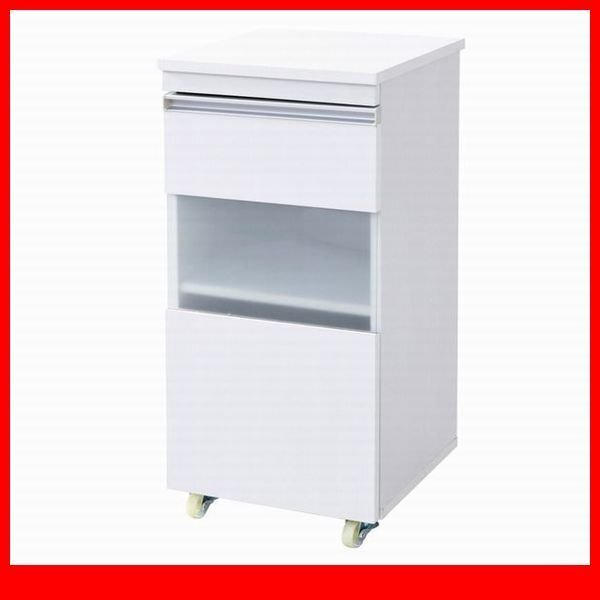 - 家電ラック★新品/キッチン収納 キッチンキャビネット/隙間家具 幅40cm 食器棚 ワゴン 可動棚 キャンスター付き 背面化粧/ホワイト/a1