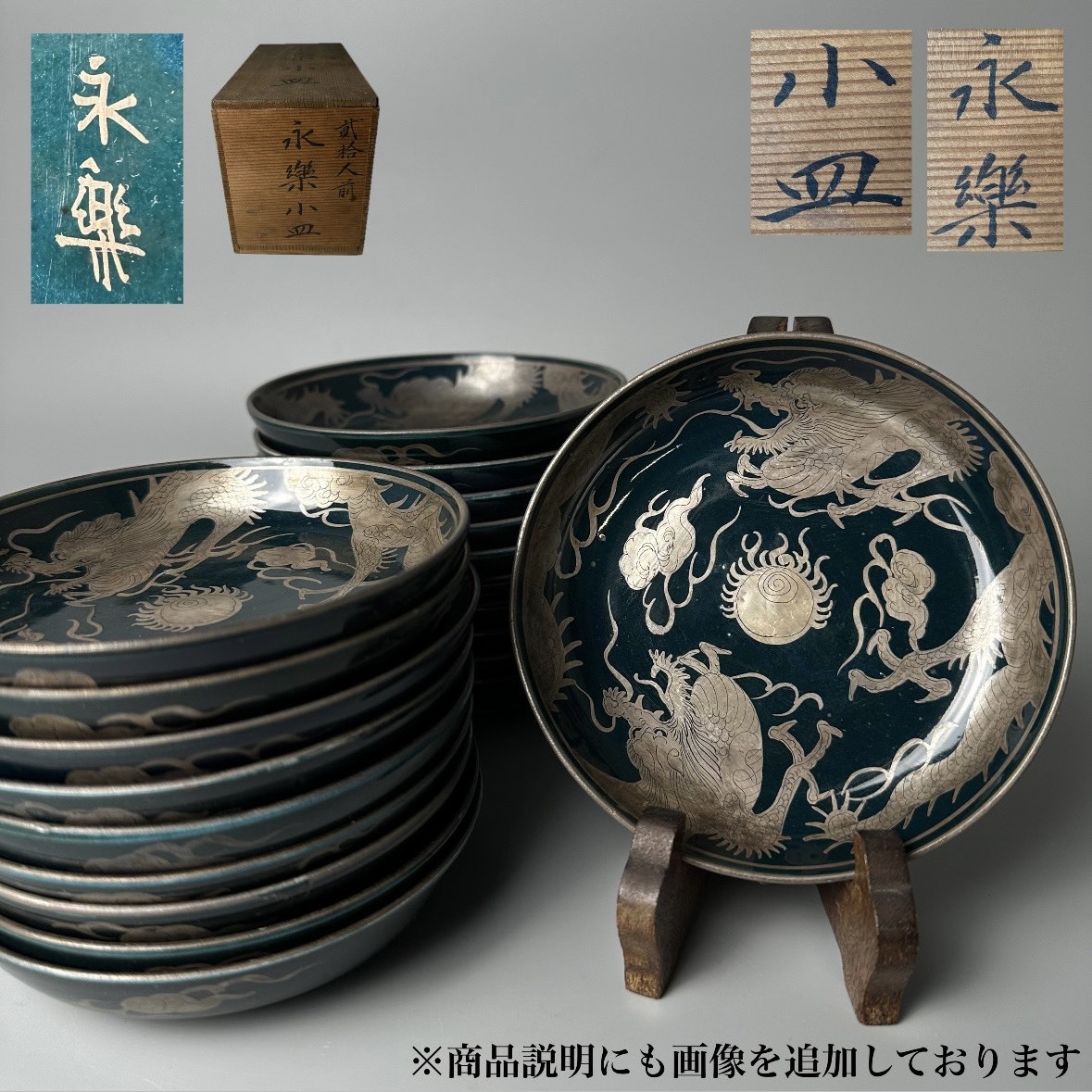 - コレクター買取品 京焼 永楽善五郎 作 銀象嵌 双龍図 小皿 二十客 在銘 木箱付 和食器 向付 懐石料理 割烹旅館 時代物