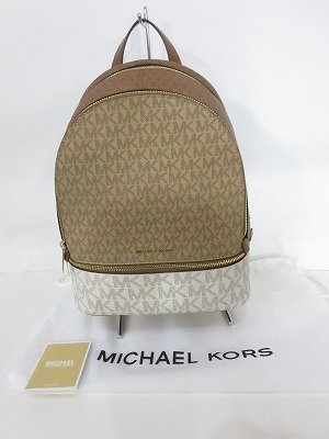 - MICHAEL KORS [マイケルコース] シグネチャー リュック [35S5GRAB6V] ロゴ柄 MK ブラウン ホワイト バッグ レディース /中古美品 SG V27.0
