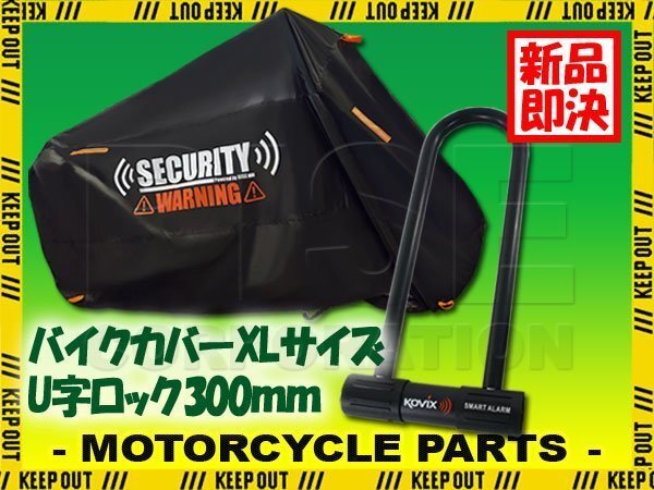 > バイクカバー XLサイズ 300mm アラーム付 U字ロック 盗難防止 鍵 300D 耐熱 ベンリィ ディオ110 エイプ50 シグナスX MT-03