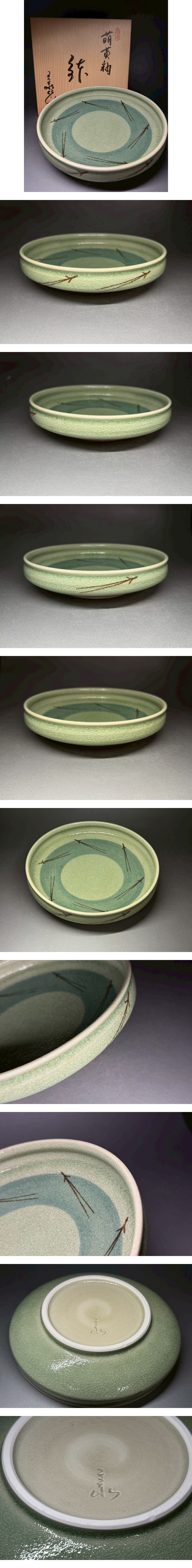 > 萌黄釉 杉浦 文泰 作 兎月窯 鉢 菓子鉢 時代物 茶道具 落款 在銘 骨董 置物 飾物 日本伝統工芸品 芸術 古美術 作家 和 食器88