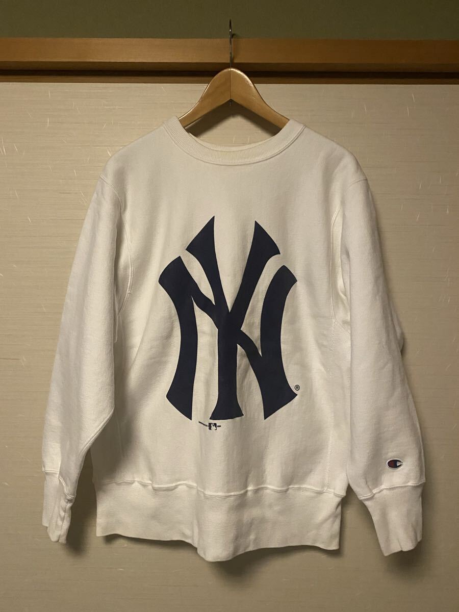 > 超希少 白 ヤンキース Champion 90s リバースウィーブ チャンピオン 刺繍タグ ビンテージ スウェット 目無し 単色 トリコ 80s YALE タタキ