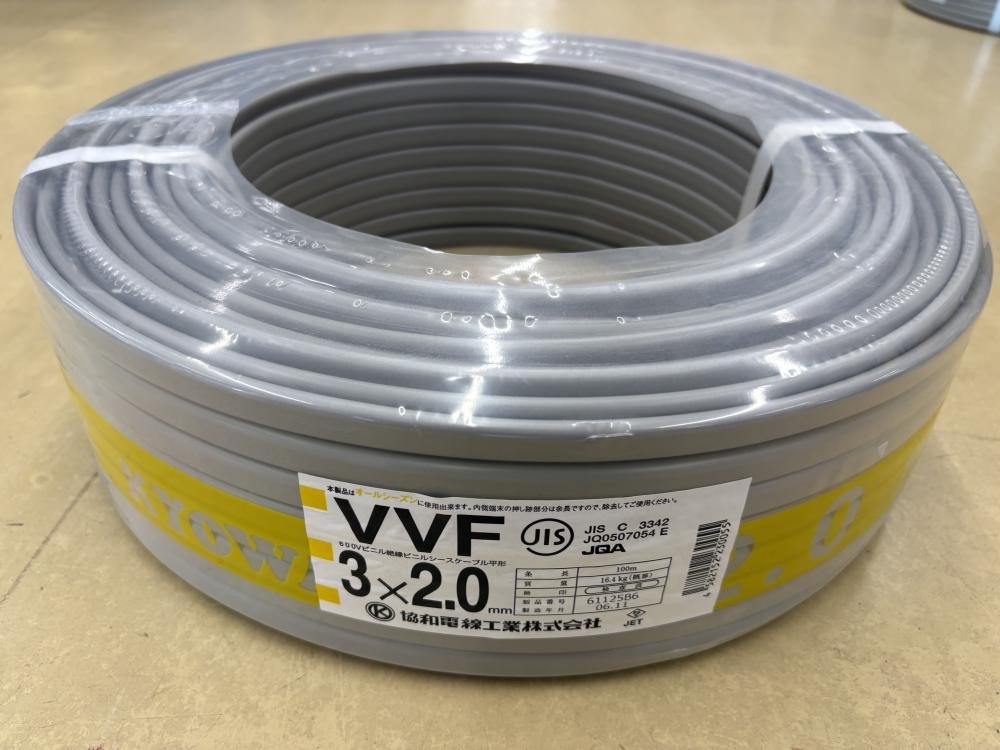 > 022●未使用品・即決価格●協和電線 VVFケーブル 3×2.0 製造年月2024年11月