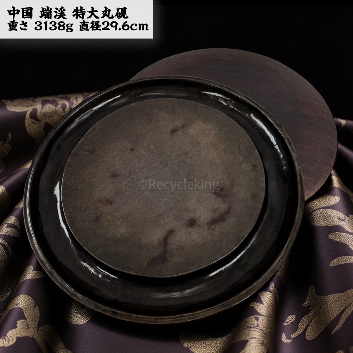 > ☆ 中国 端渓 特大丸硯 3kg 直径29.6cm 火捺 石紋 蓋付 古硯 唐硯 書家収蔵品 文房四宝 書道具 すずり 20251123-4