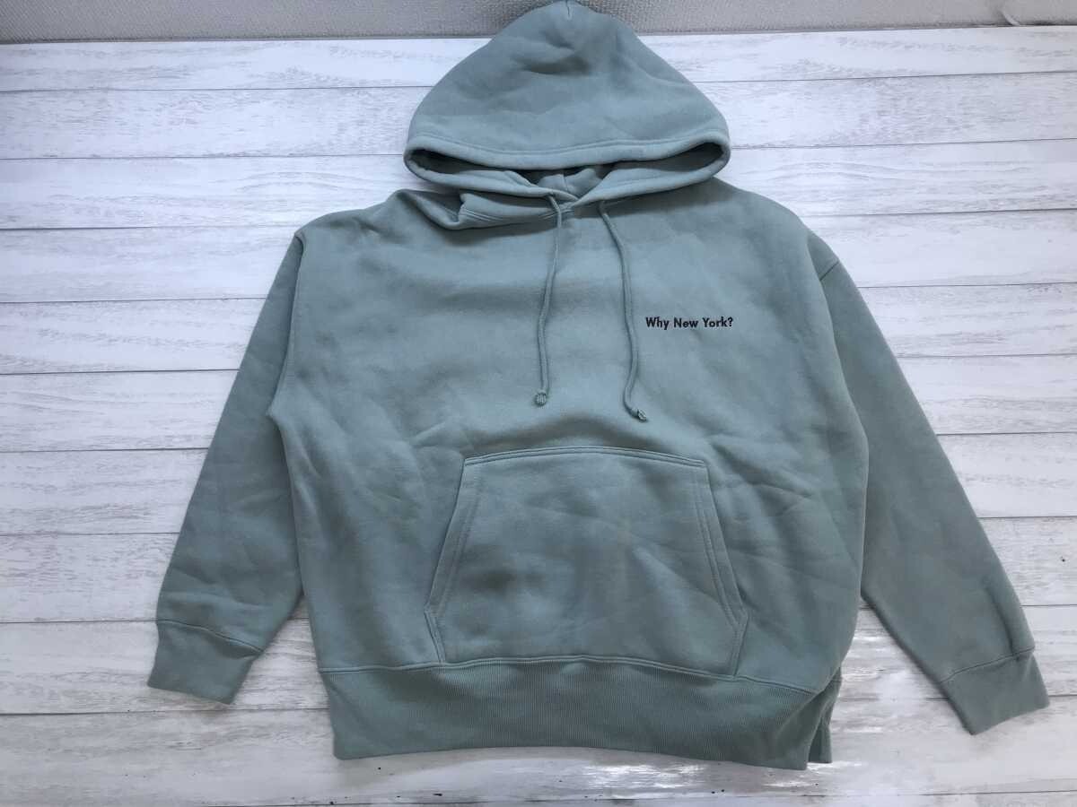 > United Athle製 アメカジ ストリート Why New York?スウェット フーディー パーカー メンズ 裏起毛 コットン混合 M グリーングレー