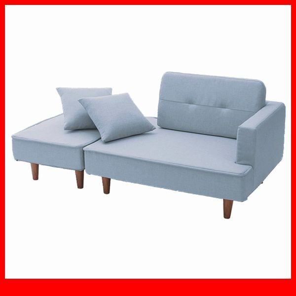 - ソファ★組み合わせ自由なコンパクトカウチソファ ラブソファ/オットマン クッション付/ポケットコイル 日本製 完成品/ライトブルー/a5
