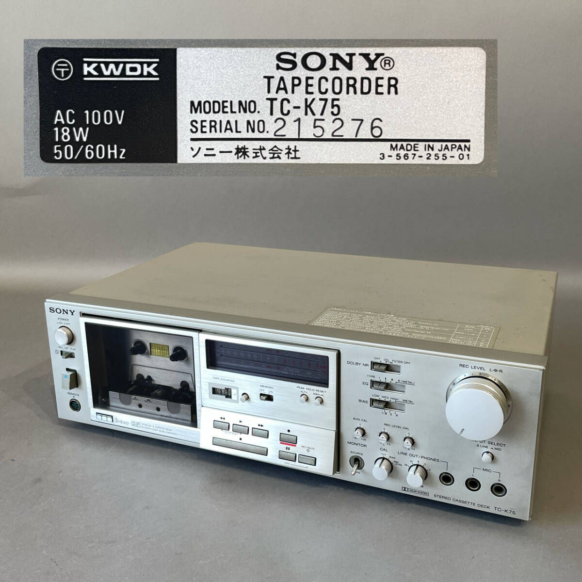 > MS3682 通電確認 SONY ソニー TAPECORDER カセットデッキ TC-K75 独立3ヘッド レコーダー メタル (検)音響機器 システムコンポ オーディオ