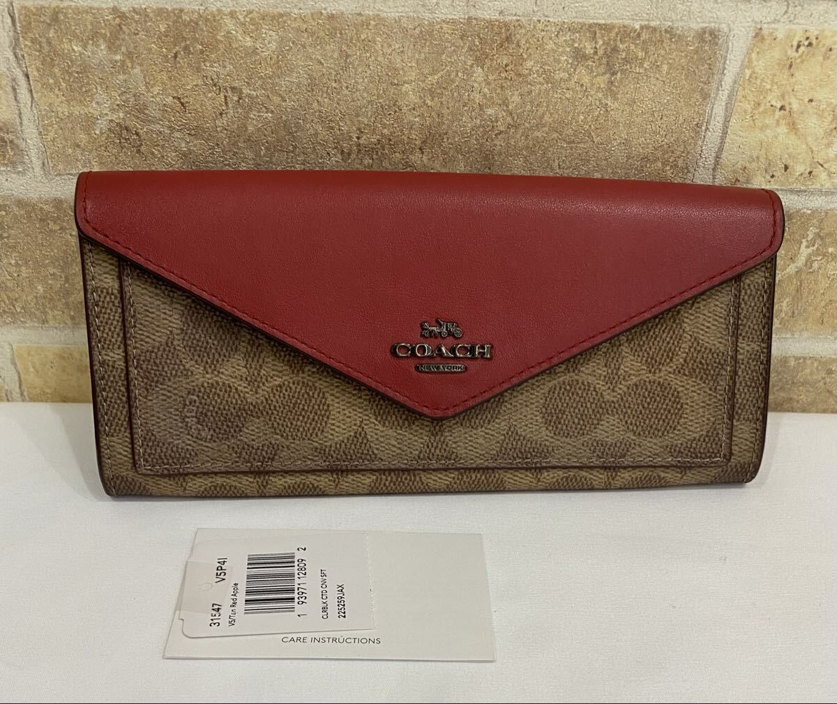 - 【未使用】コーチ COACH 財布 長財布 二つ折り シグネチャー 31547 レッド ベージュ