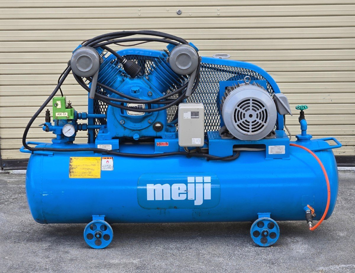 - [動作OK] 明治機械製作所 meiji レシプロエアーコンプレッサー G-37K 3.7kW タンク容量120L エースコントローラ 三相200V 50/60Hz