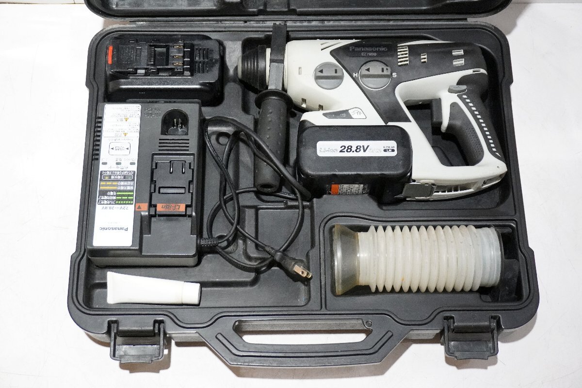 > 140☆Panasonic パナソニック EZ7880 DC28.8V 充電ハンマードリル 充電器 予備バッテリー ケース付き◇3D-594