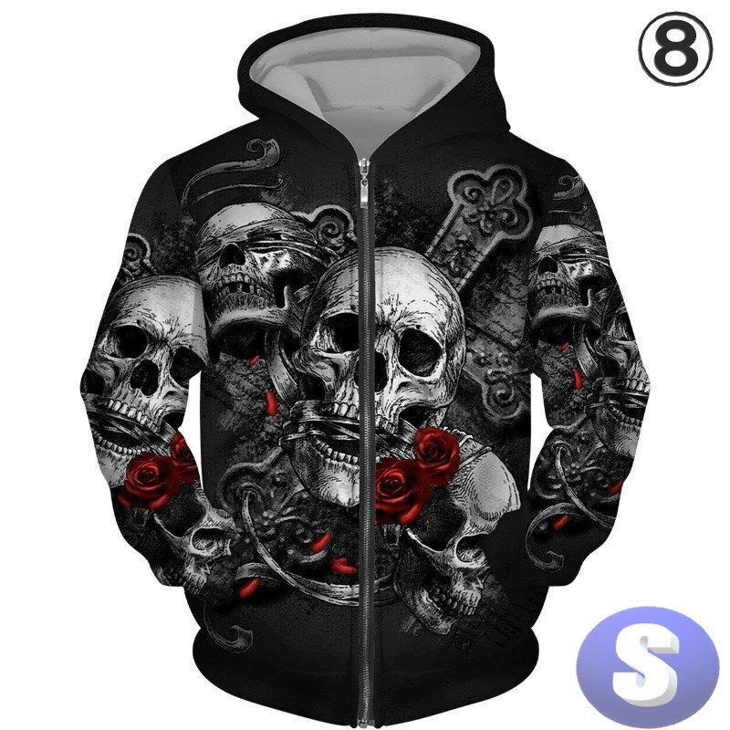 - フード付き ドクロパーカー ジップアップ カラー8 S トレーナー アウター 防寒 n712