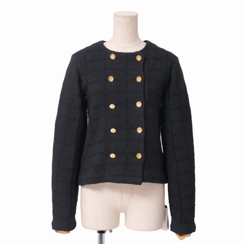 > MI3661=定価4.9万*プラージュ/Plage*2022AW*ツイードニットジャケット*金ボタン*ノーカラー*ダブルブレスト*サイズ36*ブラック系