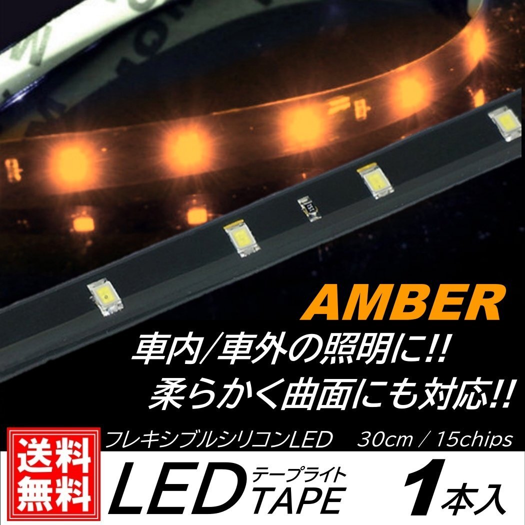 > アンバー LEDテープライト 防水仕様 30cm 15SMD カット可能 正面発光 発光色選択 ブラックベース LEDイルミネーション 1本入 デイライ