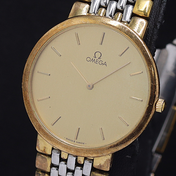 > 1円 稼働 オメガ デビル QZ ゴールド文字盤 メンズ腕時計 2011000 11BJY MST