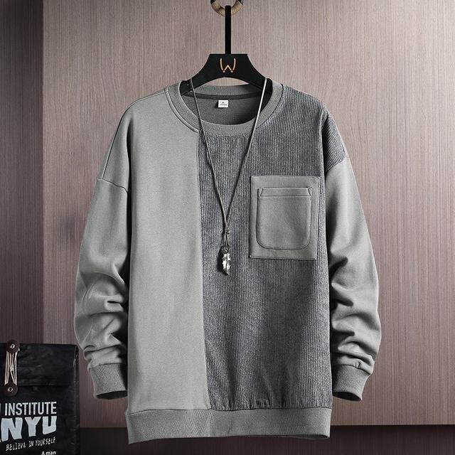 > メンズトレーナー メンズ トップス 秋服 秋冬 秋物 クルーネック ファッション 2023 秋 新作 切り替え グレー 3XL