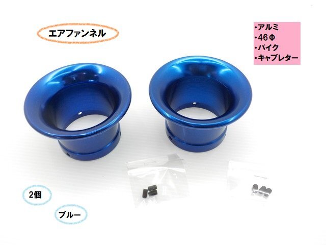 - TH59★☆アルミエアファンネル(46Φ)(バイク キャブレター)2個セット ブルー(CB400ST バリオス SR400 250TR DAX エイプ)