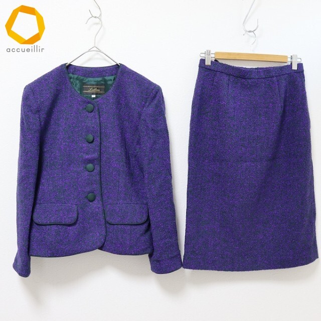 > レリアン Leilian セットアップ スカートスーツ ノーカラー ジャケット スリット [960150n]
