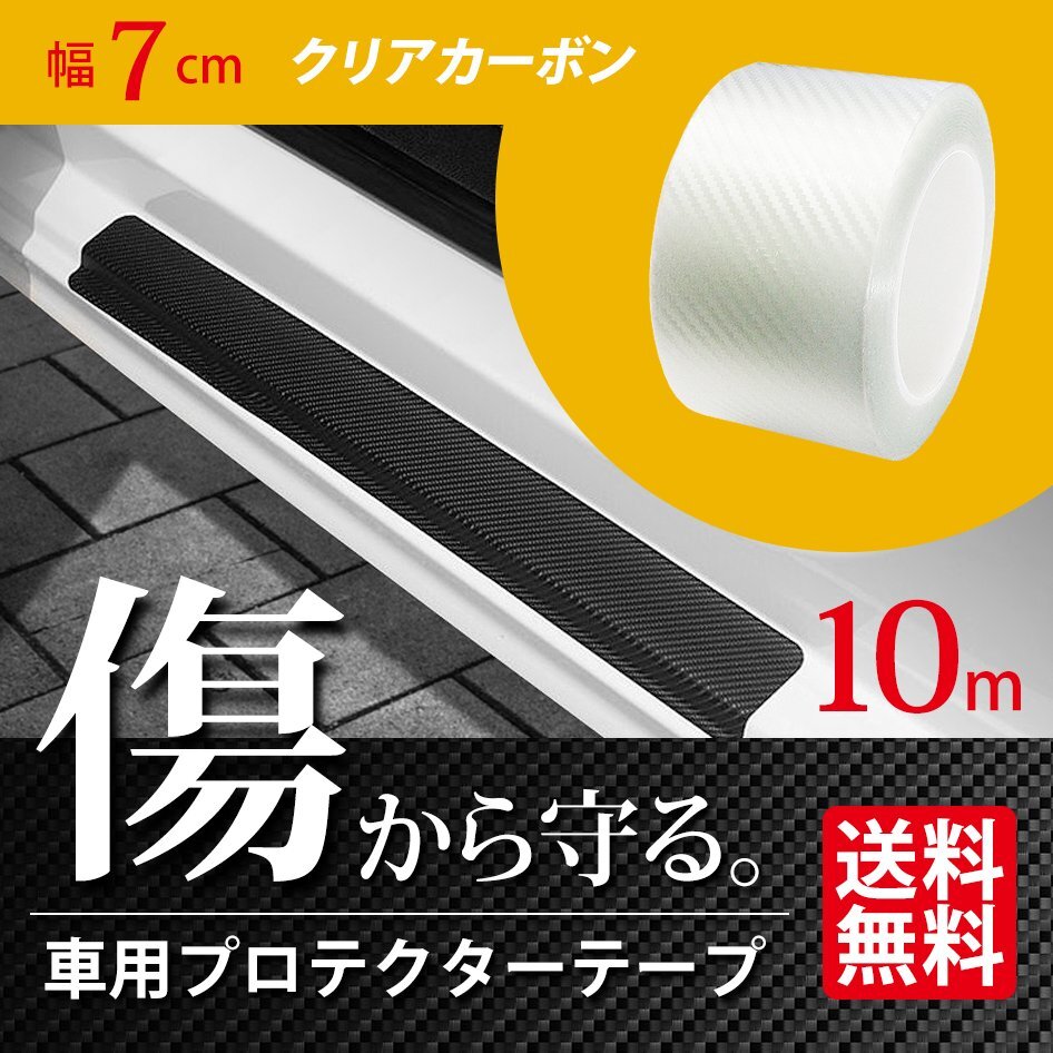 - 車用 プロテクターテープ 幅7cm 10m巻 クリア カーボン調 フィルム エッジ プロテクト ドア モール キズ防止 内装 外装 宅配便 送料無料