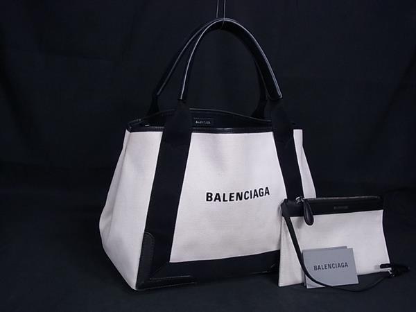 - 1円 BALENCIAGA バレンシアガ 339933 ネイビーカバスS キャンバス ポーチ付き ハンドバッグ ショルダー トート 肩掛けかばん FU8438
