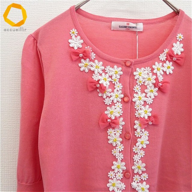 - ギャラリービスコンティ GALLERY VISCONTI 5分袖 カーディガン カットソー 花モチーフ リボン レディース [a881522]