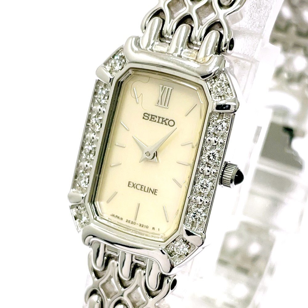 - 【1円スタート】SEIKO セイコー 2E20-7460 エクセリーヌ SS シェル文字盤 クオーツ レディース腕時計 526364
