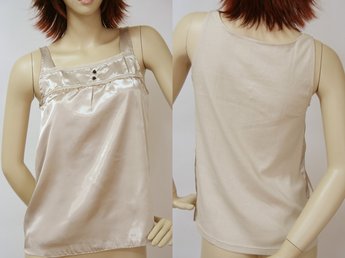 > 送料無料◆まとめ買い◆超お得◆5枚組◆美しいドレープ◆トップス 【前身】サテン地&【後身】綿100%◆ラン型キャミソール(L/シャンパンベ