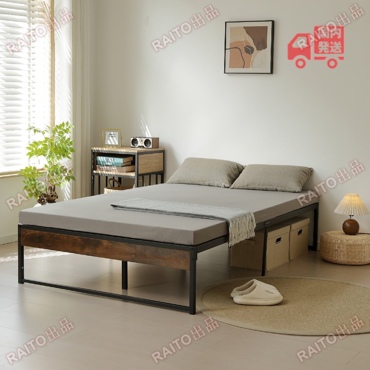 - 【翌日発送】ベッドフレーム パイプベッド セミダブル SD ベッド パイプ+木 シングルベッド ダブルベッド 木製 パイプフレーム 組立品hw068