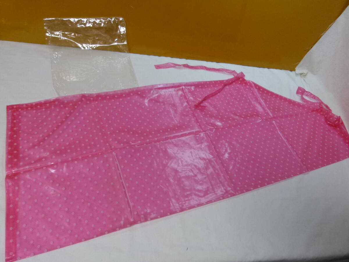 - 【送込】【前掛け】ビニールエプロン クリア ドット柄 ピンク 丈:約90cm フリーサイズ【新品未使用】【送料無料】