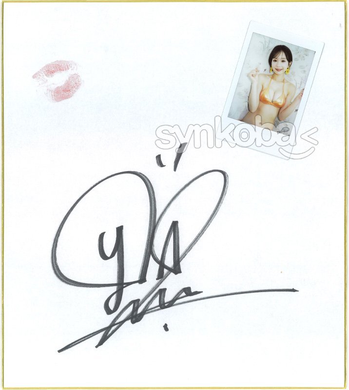 > あらた唯 ~High Reso Girl~ 直筆サイン&生キス&オフショットチェキ入り色紙 (オレンジビキニ) ◆フレーム付き! /WooHoo 251127-812