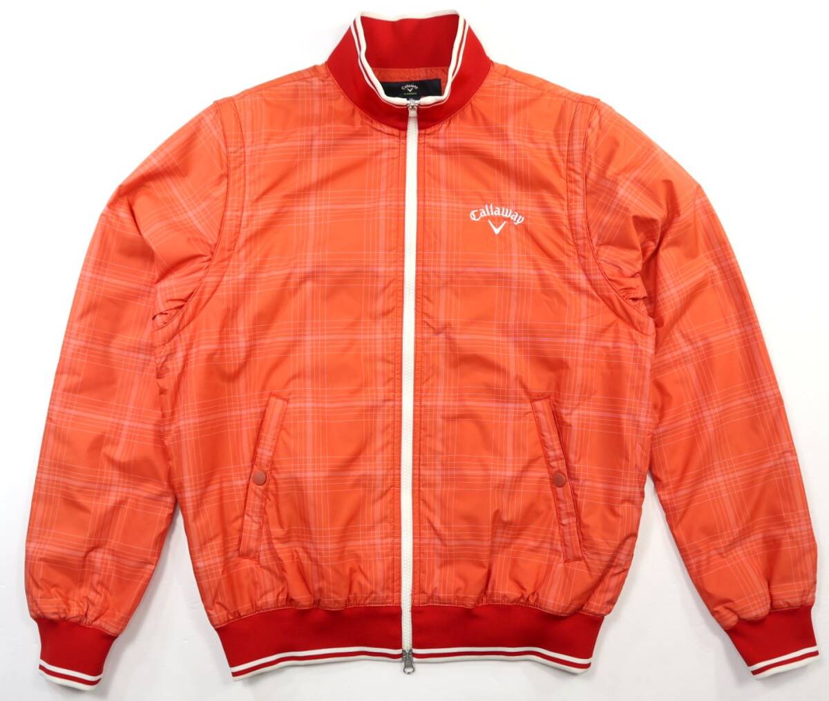 > 美品★ベストにも★Callaway キャロウェイ チェック柄 2WAY中綿入りジャケット/サーモン/Mサイズ