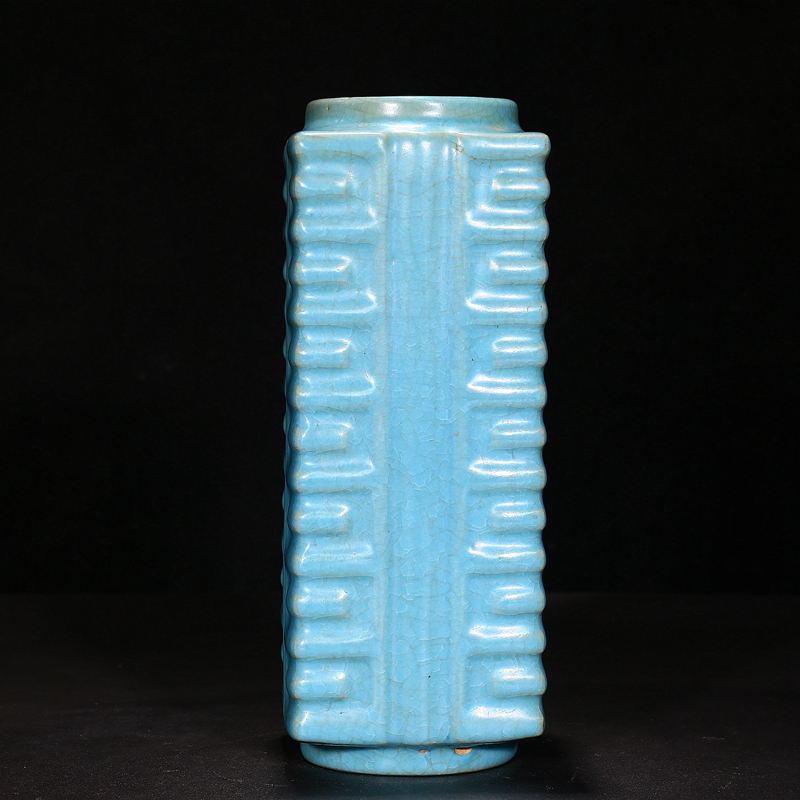 - ◆LC102◆宋朝時代 汝窯天藍釉乾隆銘文琮式瓶 時代物 古玩 唐物 古陶磁器■