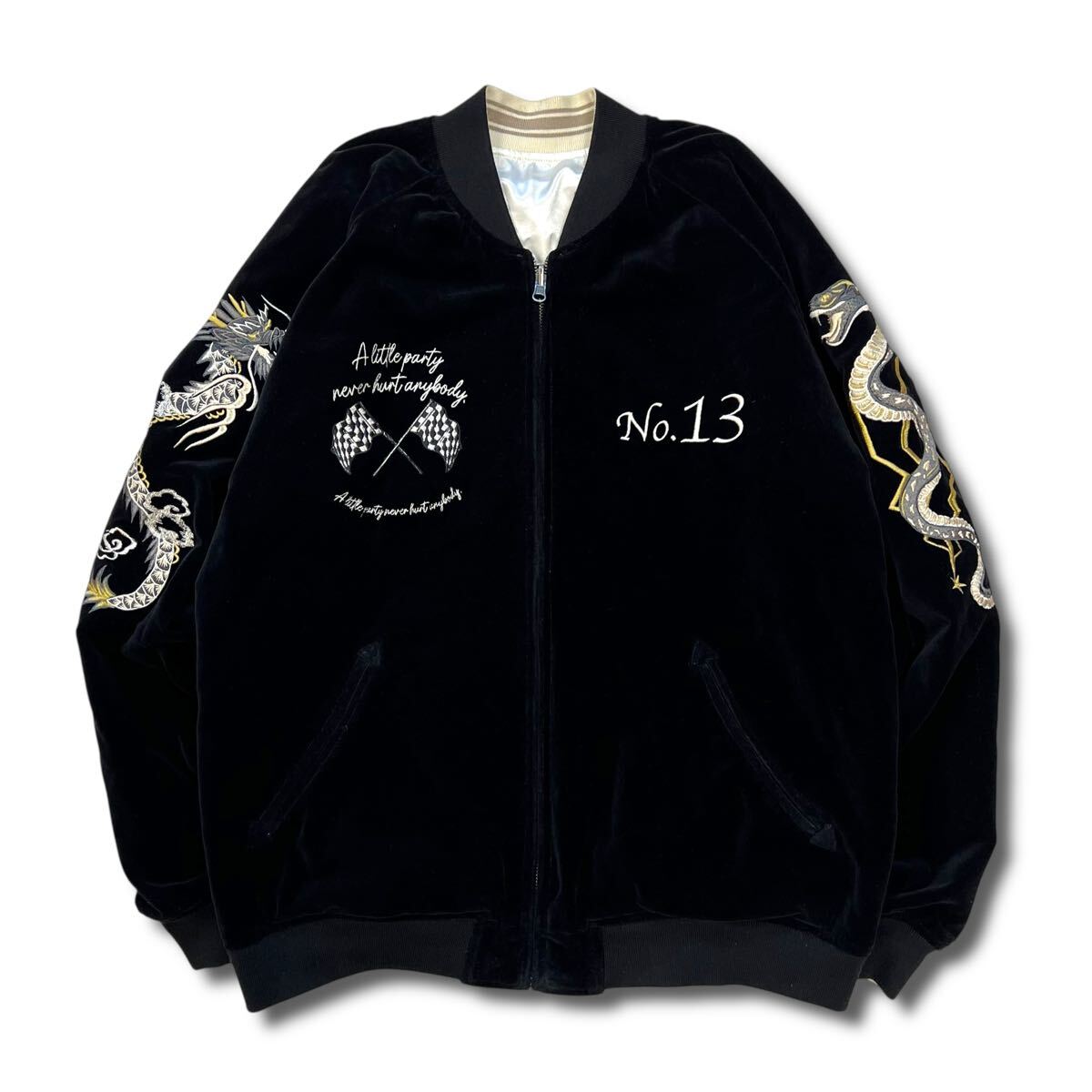- 美品 Schott 別珍 × サテン チェッカーフラッグ ドラゴン スネーク リバーシブル スカジャン L スーベニア ジャケット ショット