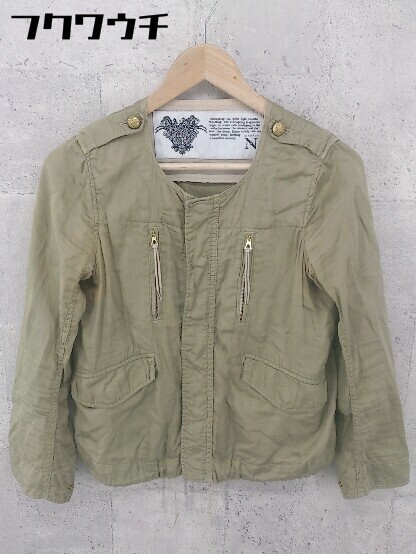 - ◇ RNA アールエヌエー 薄手 ノーカラー ジャケット ブルゾン サイズM カーキ系 レディース
