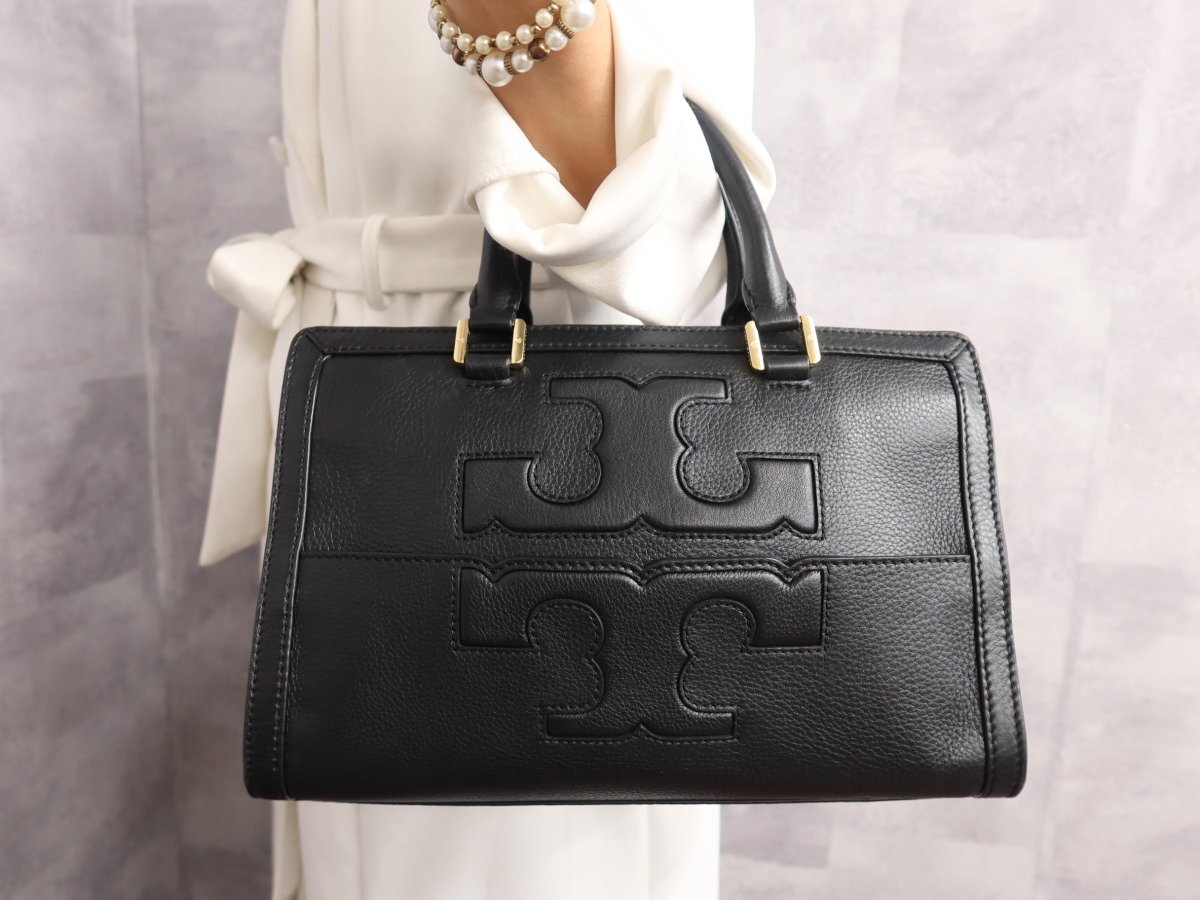 > ●超美品●TORY BURCH トリーバーチ●カーフ レザー 本革●トート ハンド バッグ●黒●ゴールド金具●腕掛け●収納 かばん●Js62796