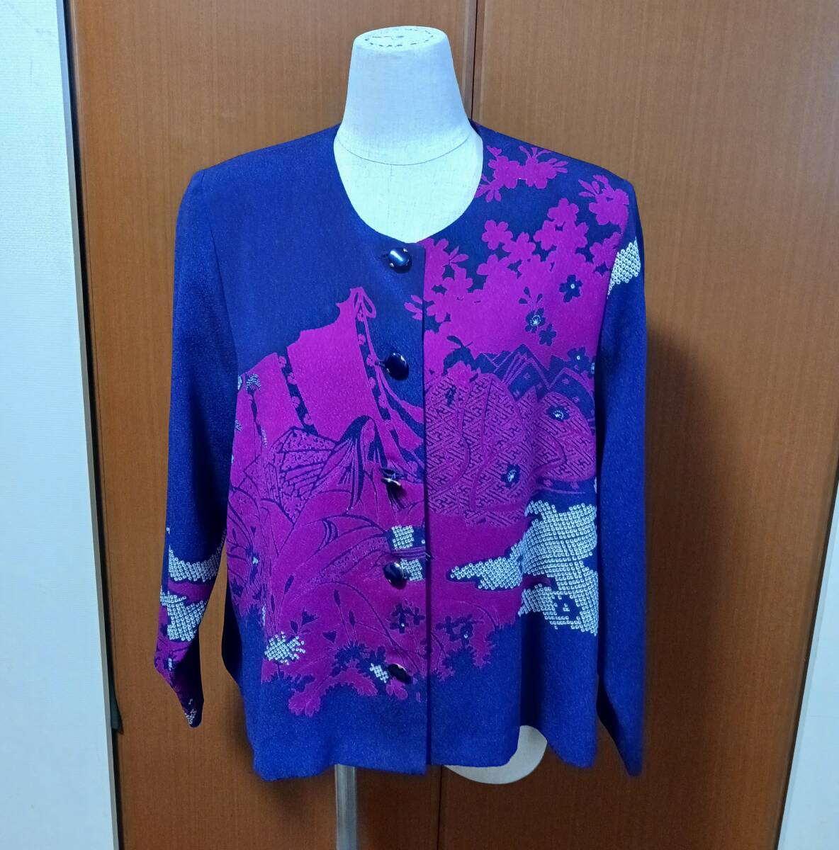 > ★☆マルフジ♪ちりめん★花柄☆長袖★チュニック☆3L★トップス☆レディース★パープル系☆紫系★和柄☆mf★MARUFUJI☆★