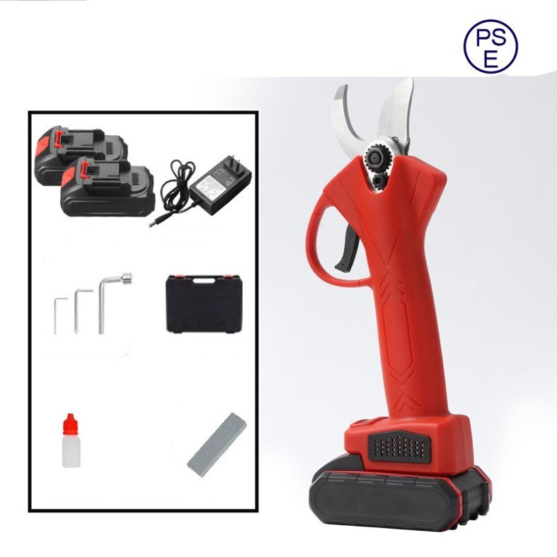 - 新型電動ハサミ 充電式 切断直径32mm 庭木/枝切り/果樹用/電線/ケーブルなど 剪定鋏 電池2個 (A135)