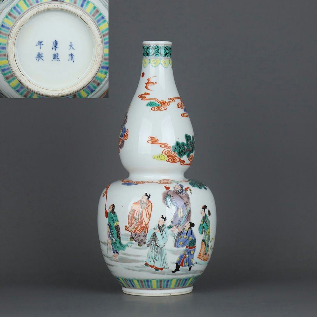 - ▼渡鶴羽▼A0731清康熙 五彩八仙賀寿図葫芦瓶・古陶磁器 ・珍品旧蔵・古賞物・時代物