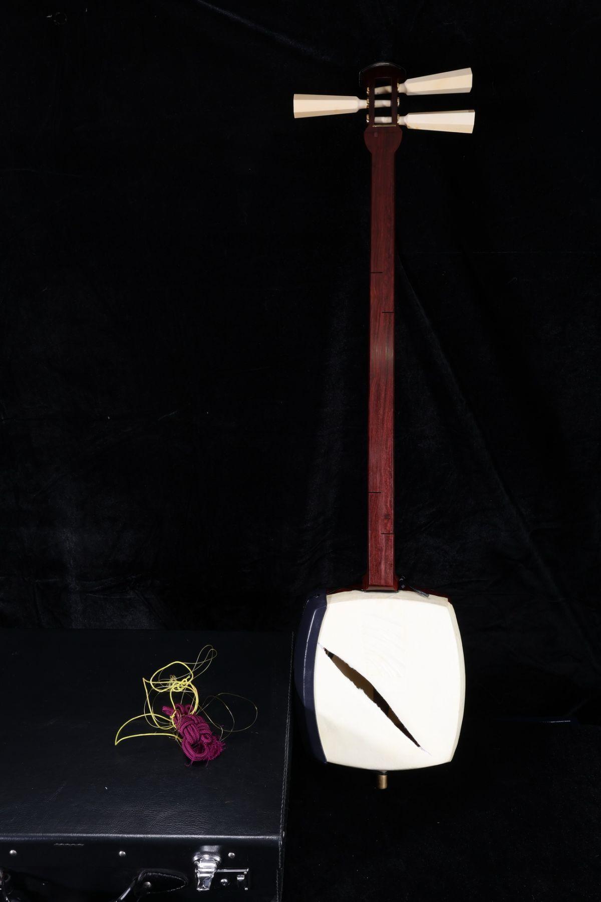 - 【珍品堂】1円から Q19-V15 津軽 三味線 バチ 長唄 撥 極上 ケース付 和楽器 弦楽器 紅木 民謡 時代物 工芸品 鑑賞品 コレクション 希少