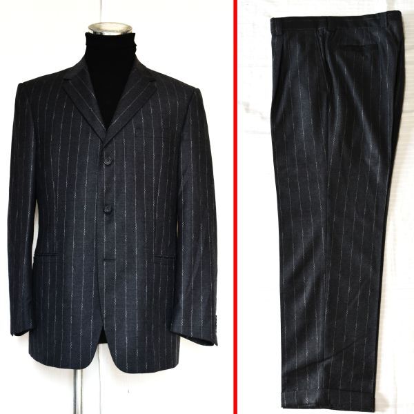 - 143 ★★VERSACE★未使用級★ヴェルサーチ★イタリア★都会的センス斬新なグレー白の稲妻ストライプ上品色気ある男が選ぶ豪華なスーツ52/LL