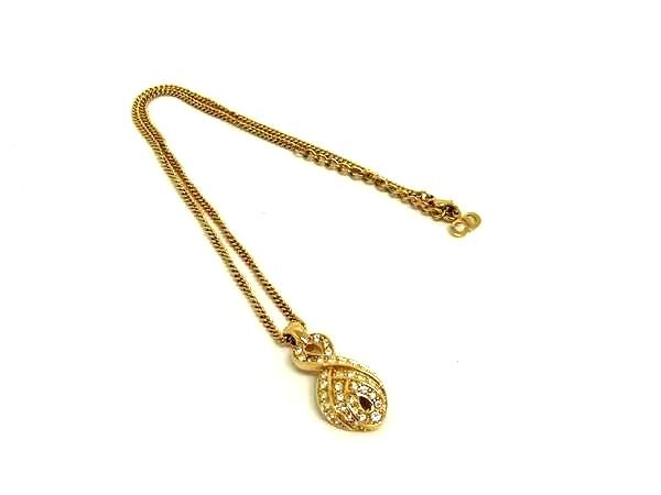 - 1円 ■美品■ ChristianDior クリスチャンディオール ヴィンテージ ラインストーン ネックレス アクセサリー ゴールド系 FU8156